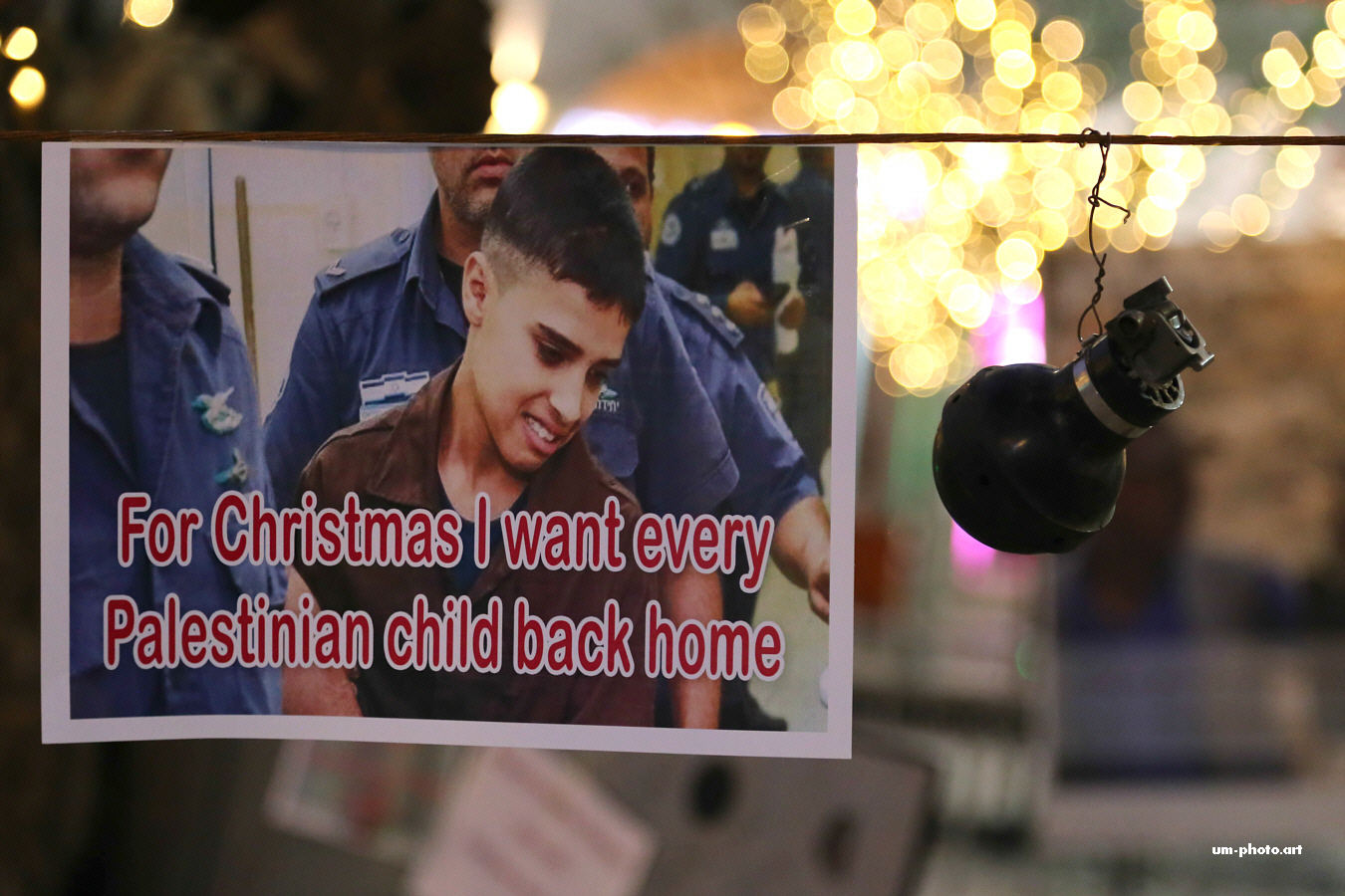 2 von 2 - Über 300 palästinensische Kinder verbringen Weihnachten in israelischen Militärgefängnissen. Auch durch das Inhaftieren von Kindern verstößt Israel gegen das Völkerrecht.